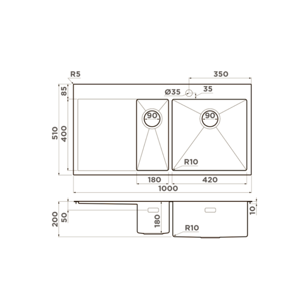 Мойка кухонная Omoikiri из коллекции Akisame 100-2-IN-R имеет размеры 1000х510 мм., изготовлена из нержавеющей стали. Форма — прямоугольная, одна чаша с отверстием для смесителя. Сифон в комплекте. Ширина чаши 42. Врезной монтаж. Имеется дополнительная чаша и крыло.
