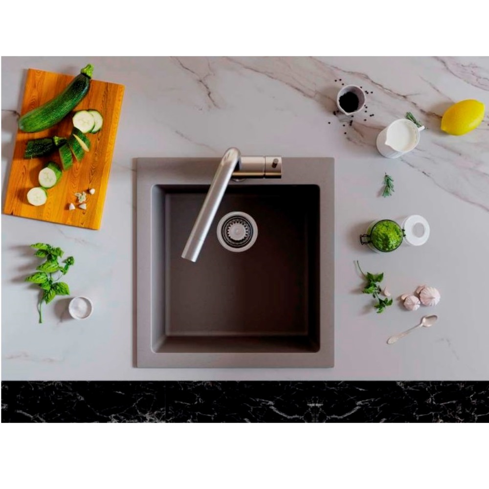 Мойка кухонная Omoikiri из коллекции Bosen 47-PL имеет размеры 470х500 мм., изготовлена из искусственного гранита. Форма — прямоугольная, одна чаша без отверстия для смесителя. Сифон в комплекте. Ширина чаши 40. Подстольный монтаж.