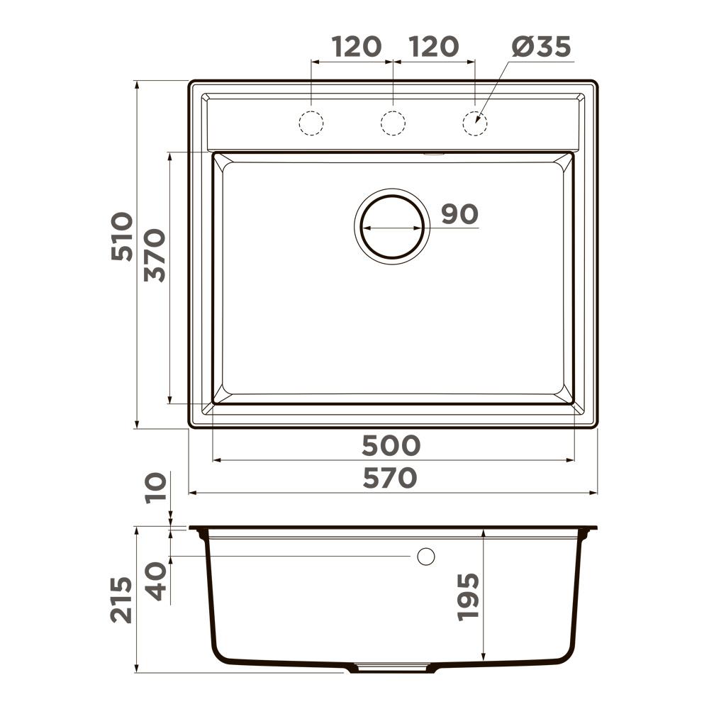 Мойка кухонная Omoikiri из коллекции Daisen 57-ES имеет размеры 570х510 мм., изготовлена из искусственного гранита. Форма — прямоугольная, одна чаша без отверстия для смесителя. Сифон в комплекте. Ширина чаши 50. Врезной монтаж