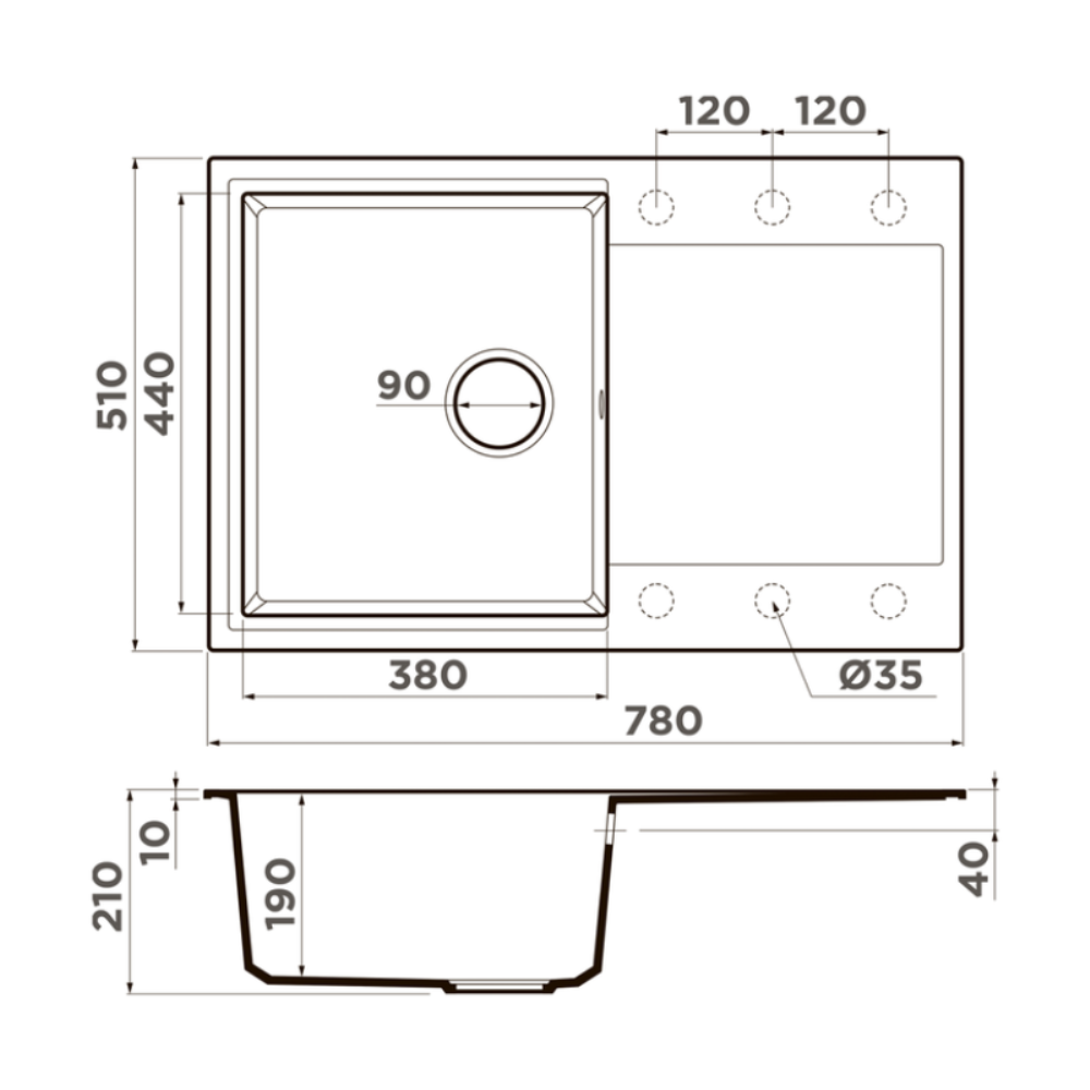Мойка кухонная Omoikiri из коллекции Daisen 78-GR имеет размеры 780х510 мм., изготовлена из искусственного гранита. Форма — прямоугольная, одна чаша без отверстия для смесителя. Сифон в комплекте. Ширина чаши 38. Врезной монтаж. Имеется крыло.