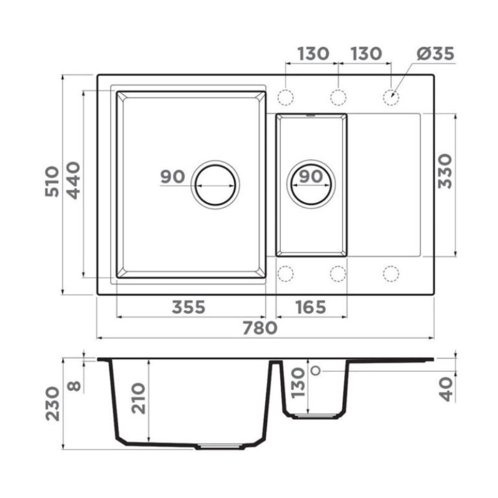 Мойка кухонная Omoikiri из коллекции Daisen 78-2T-GR имеет размеры 780х510 мм., изготовлена из искусственного гранита. Форма — прямоугольная, одна чаша без отверстия для смесителя. Сифон в комплекте. Ширина чаши 35,5. Врезной монтаж. Имеется дополнительная чаша.