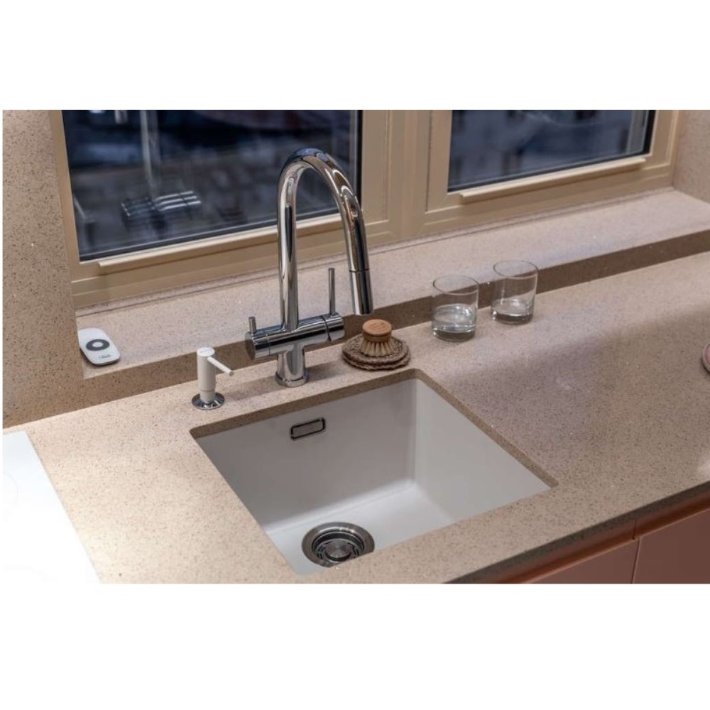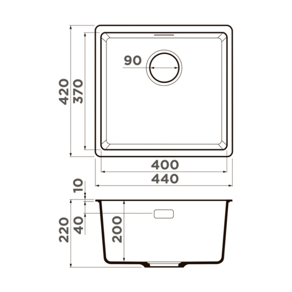 Мойка кухонная Omoikiri из коллекции Kata 44-U-SA имеет размеры 440х420 мм., изготовлена из искусственного гранита. Форма — прямоугольная, одна чаша без отверстия для смесителя. Сифон в комплекте. Ширина чаши 40. Подстольный монтаж