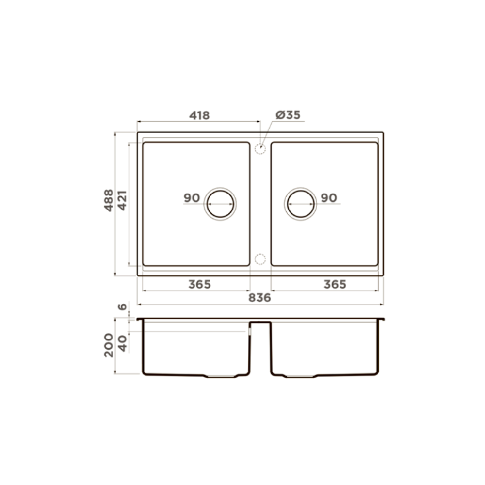 Мойка кухонная Omoikiri из коллекции Kitagawa 83-2-U-GB имеет размеры 836х488 мм., изготовлена из искусственной керамики. Форма — прямоугольная, две чаши без отверстия для смесителя. Сифон в комплекте. Ширина чаши 36,5. Врезной монтаж.