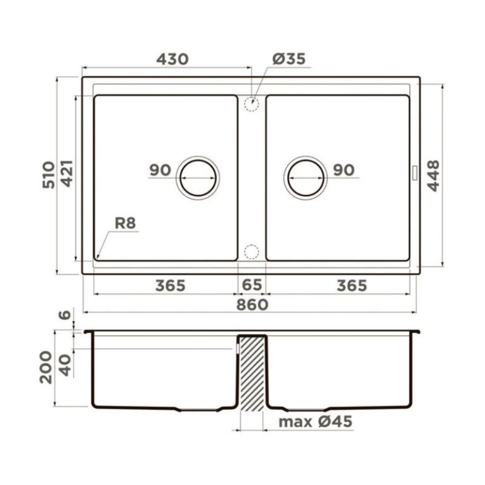 Мойка кухонная Omoikiri из коллекции Kitagawa 86-2-WH имеет размеры 860х510 мм., изготовлена из искусственной керамики. Форма — прямоугольная, две чаши без отверстия для смесителя. Сифон в комплекте. Ширина чаши 36,5. Врезной монтаж.