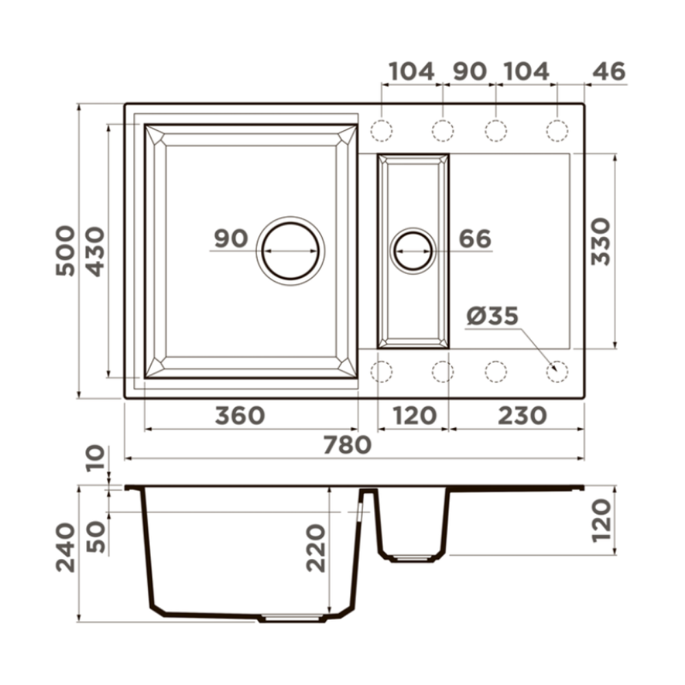 Мойка кухонная Omoikiri из коллекции Sakaime 78-2-PL имеет размеры 780х500 мм., изготовлена из искусственного гранита. Форма — прямоугольная, одна чаша без отверстия для смесителя. Сифон в комплекте. Ширина чаши 36. Врезной монтаж. Имеется дополнительная чаша и крыло.