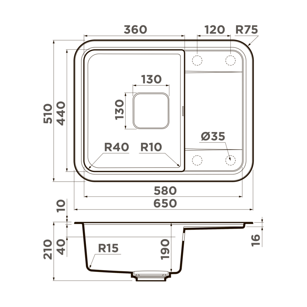Мойка кухонная Omoikiri из коллекции Tasogare 65-SA имеет размеры 650х510 мм., изготовлена из искусственного гранита. Форма — прямоугольная, одна чаша без отверстия для смесителя. Сифон в комплекте. Ширина чаши 36. Врезной монтаж.
