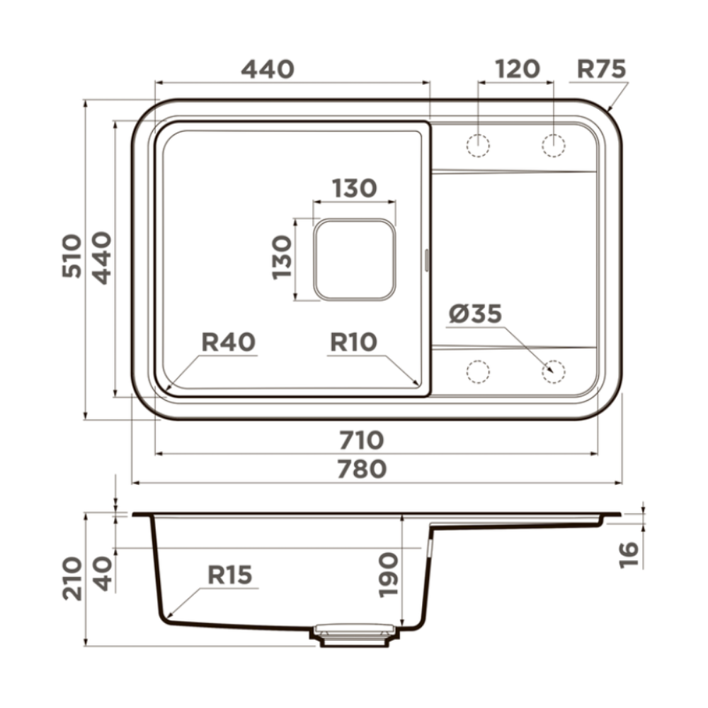 Мойка кухонная Omoikiri из коллекции Tasogare 78-SA имеет размеры 780х510 мм., изготовлена из искусственного гранита. Форма — прямоугольная, одна чаша без отверстия для смесителя. Сифон в комплекте. Ширина чаши 44. Врезной монтаж. Имеется крыло.