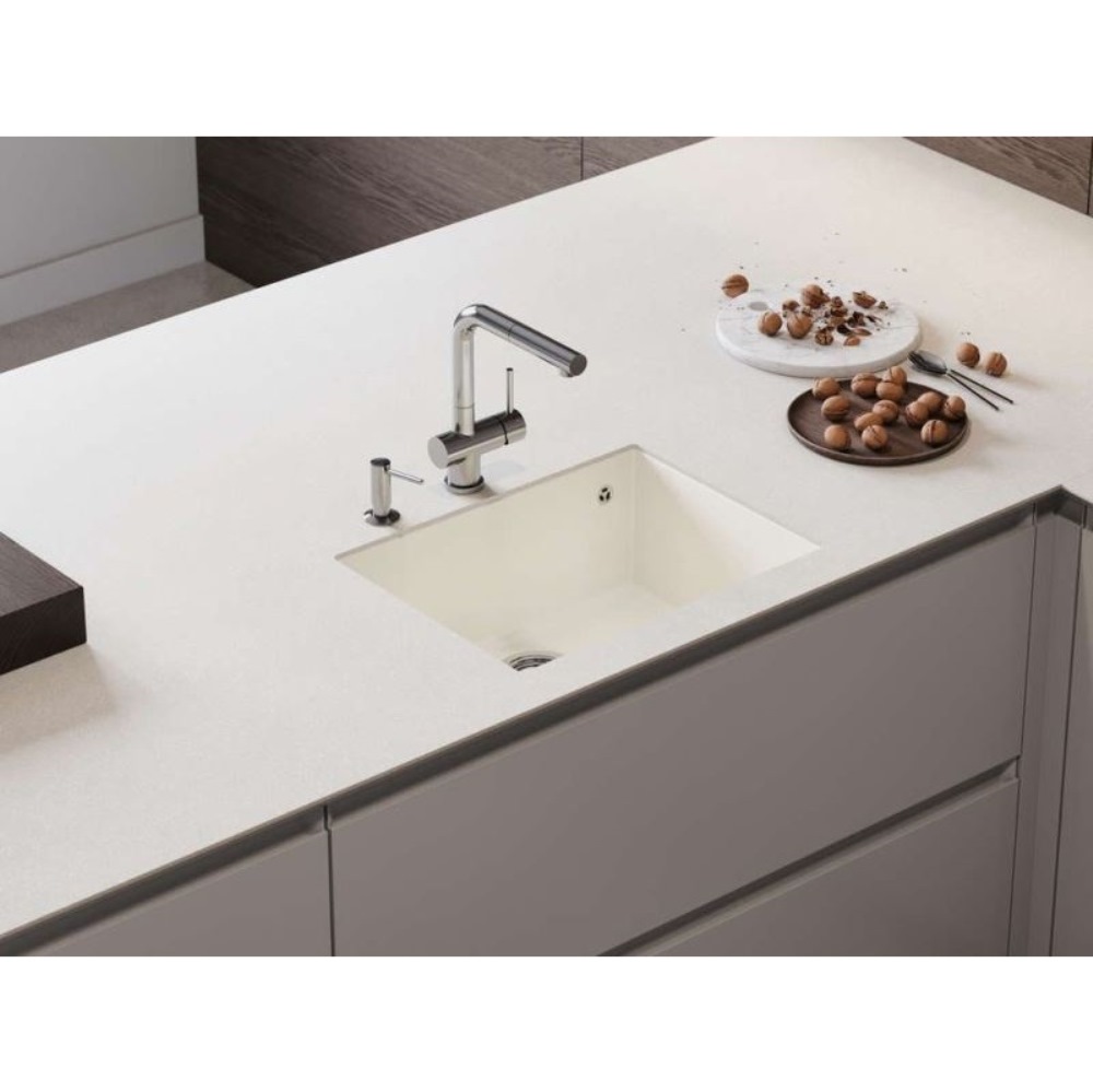 Мойка кухонная Omoikiri из коллекции Tedori 54-U-GR имеет размеры 550х420 мм., изготовлена из искусственного гранита. Форма — прямоугольная, одна чаша без отверстия для смесителя. Сифон в комплекте. Ширина чаши 51. Подстольный монтаж.