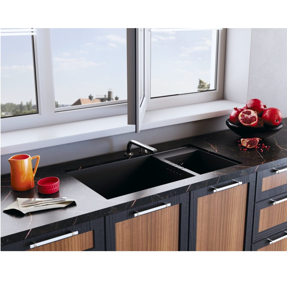 Смеситель для кухни Omoikiri Nara-S оснащен рычажным управлением для регулировки температуры и напора воды. Горизонтальный монтаж на 2 отверстия. Вытяжной излив 220 мм.
